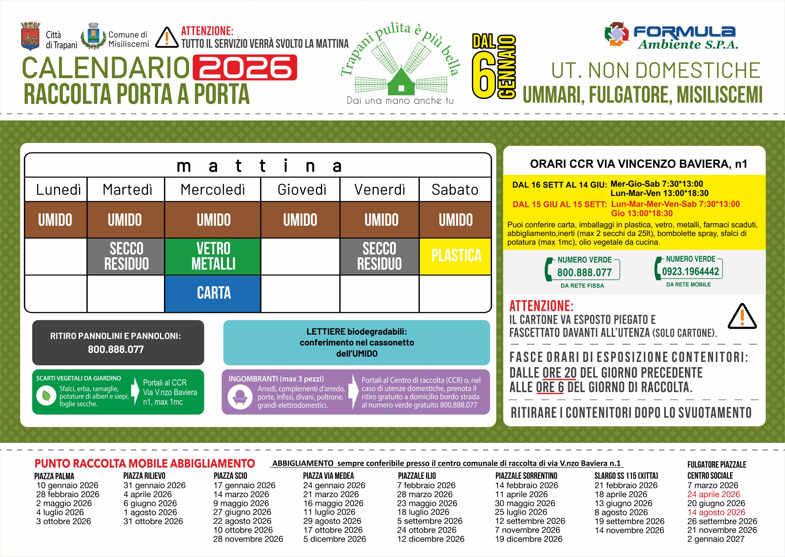 Calendari 2026 raccolta differenziata a Trapani